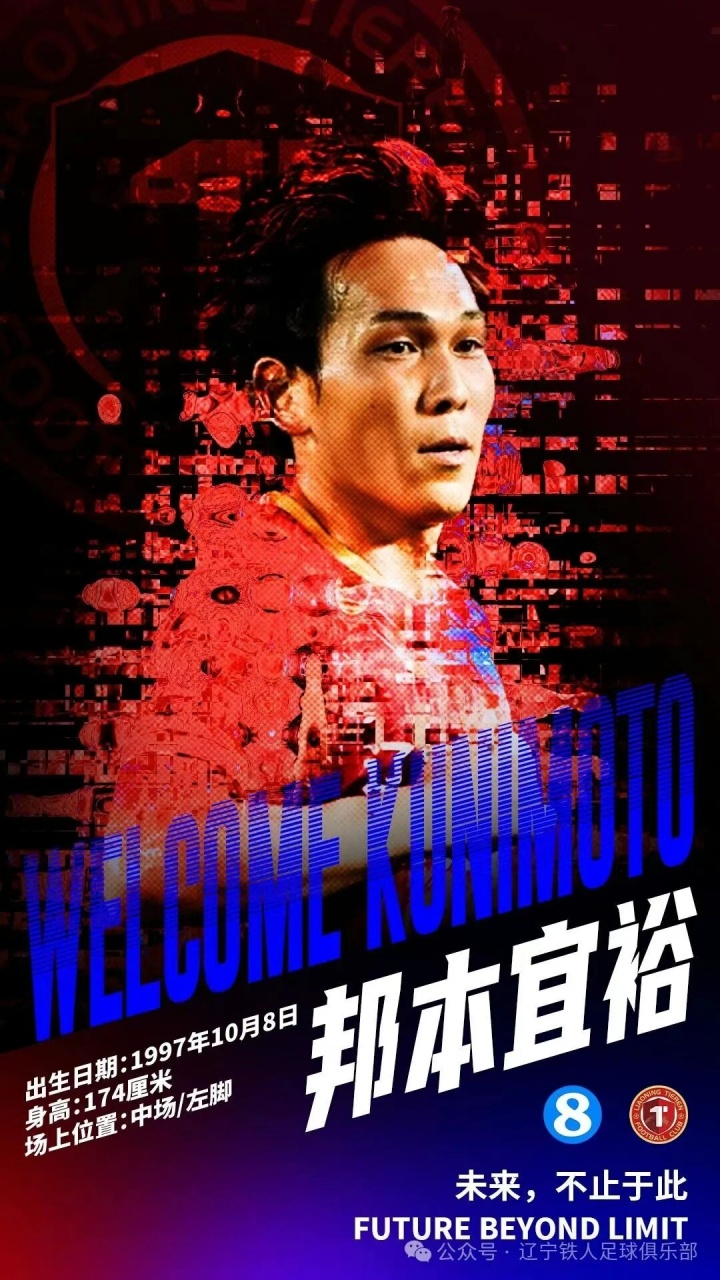 经辽宁铁人足球俱乐部反复斟酌,综合研判,经与球员经纪团队深入沟通,认真听取多方意见,充分理解同行困扰,尤其尊重球员本人意愿,辽宁铁人足球俱乐部决定与邦本宜裕(Takahiro Kunimoto)先生重续签约。